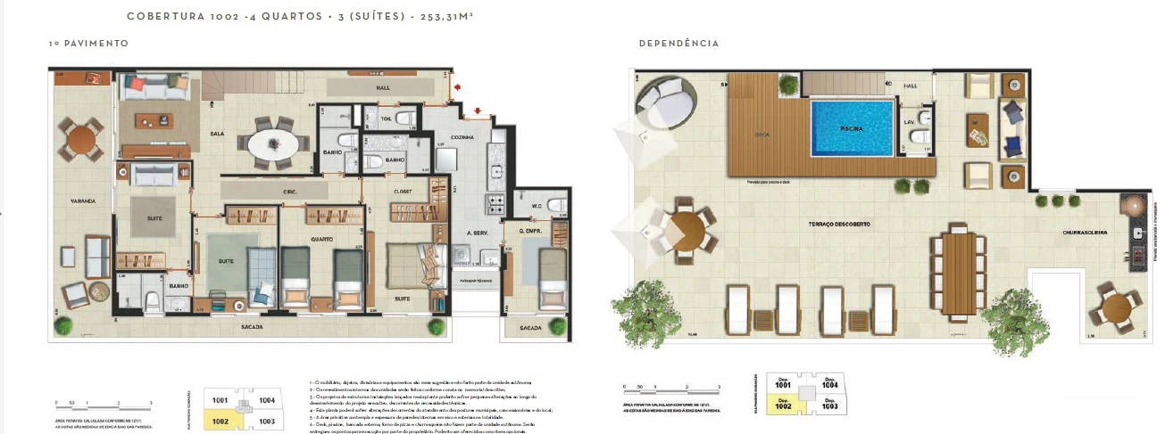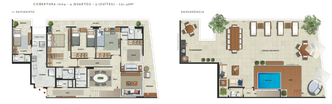 Coberturas duplex de 231m² a 253m²